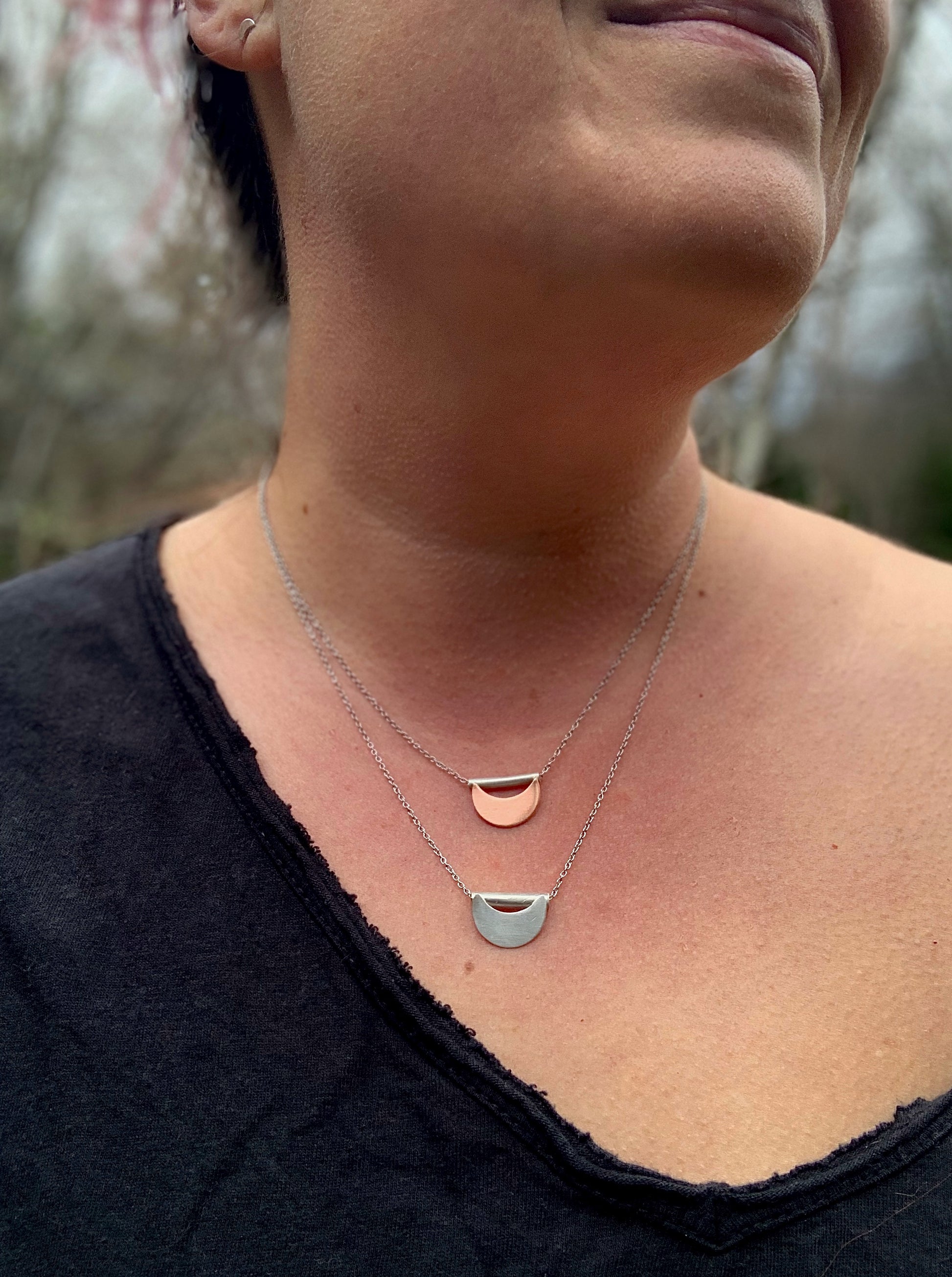 Moons are 1.5cm with two great options of sterling silver or sterling silver and copper!