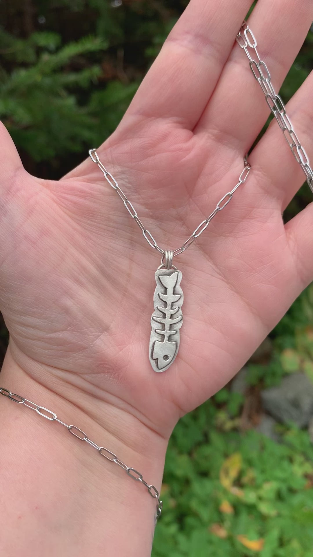 This tiny fish skeleton pendant was sawn out by hand with a saw blade thinner than an eyelash. This necklace is perfect for everyday wear!