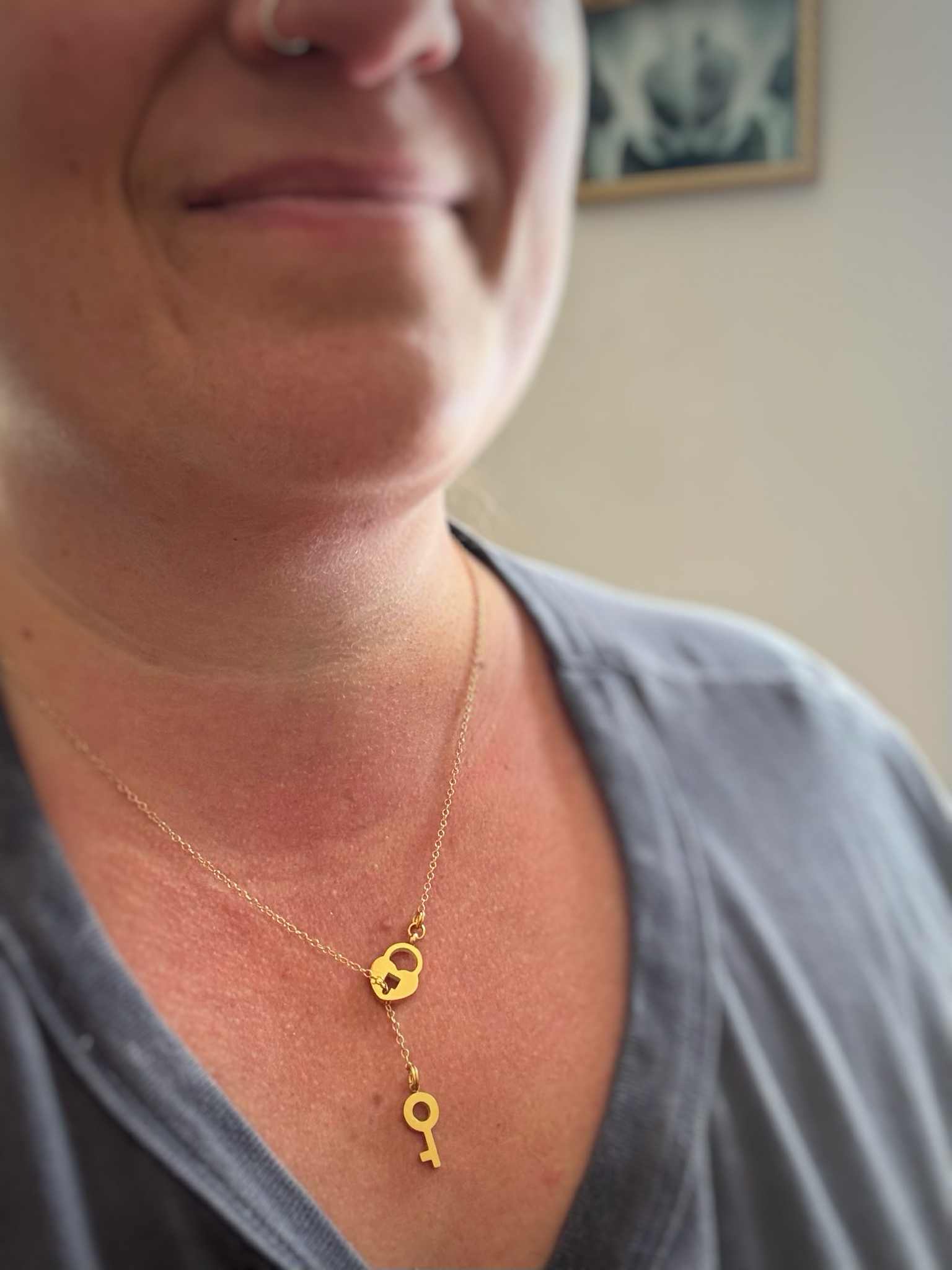This piece represents a bond between two people, OR a person and their self - where the lock signifies something cherished and the key symbolizes the person or experience that unlocks access to it.